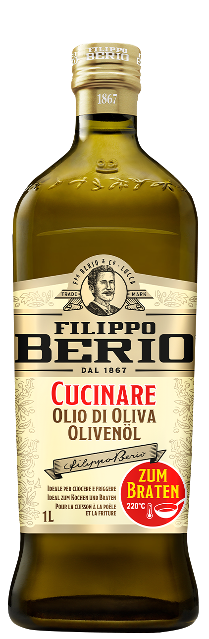 Für ein gesundes Frittieren ist es wichtig, ein Öl mit einem hohen Rauchpunkt zu wählen. Das Filippo Berio Cucinare Olivenöl ist für Kochtemperaturen bis 220 °C geeignet. Außerdem ist es im Vergleich zu anderen Ölen und verarbeiteten Fetten wie Butter, Schmalz oder Margarine arm an gesättigten Fettsäuren.